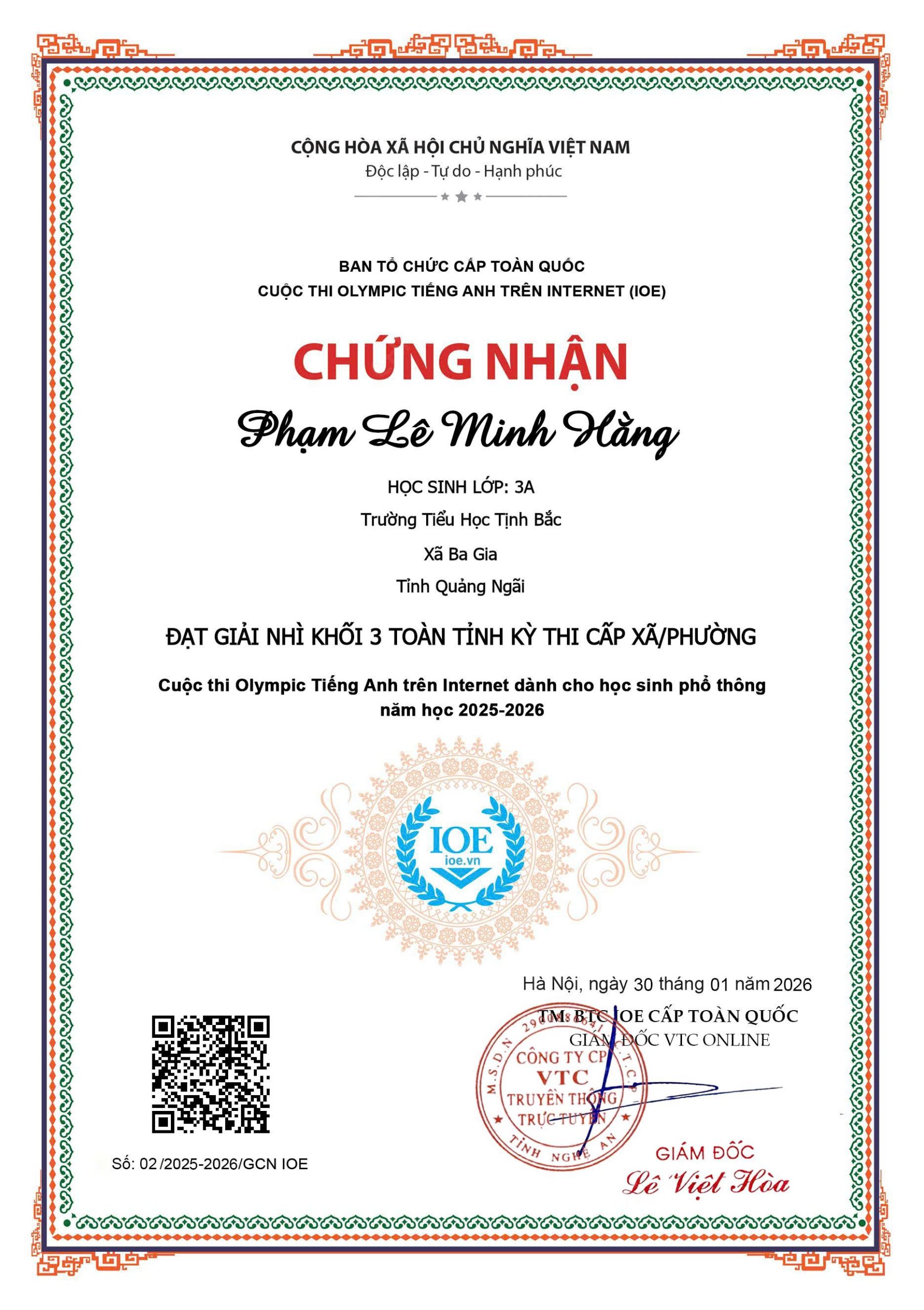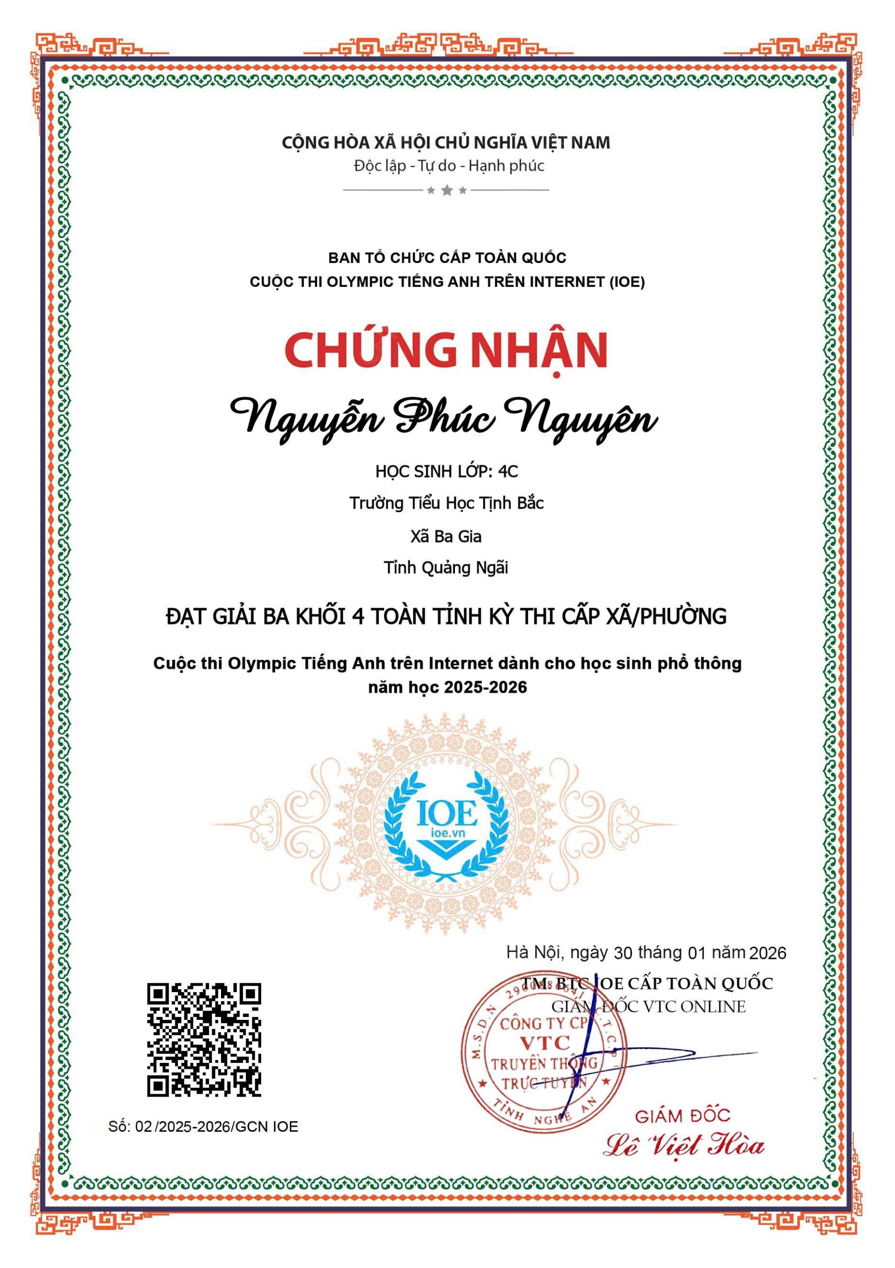 • HỌC SINH ĐẠT GIẢI IOE KÌ THI CẤP TRƯỜNG (05/02/2026)